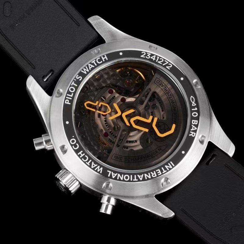 This top-of-the-line 1:1 clone IWC Pilot’s Chronograph (model IW388116) interprets the aesthetics of motorsport with a 41mm exquisite case diameter. The black dial is paired with eye-catching white and gold Arabic numeral hour markers, providing clear time reading and visual impact. The innovative combination of rubber strap and stainless steel case is light, durable and full of sportiness, perfectly matching racing culture enthusiasts and casual daily outfits.