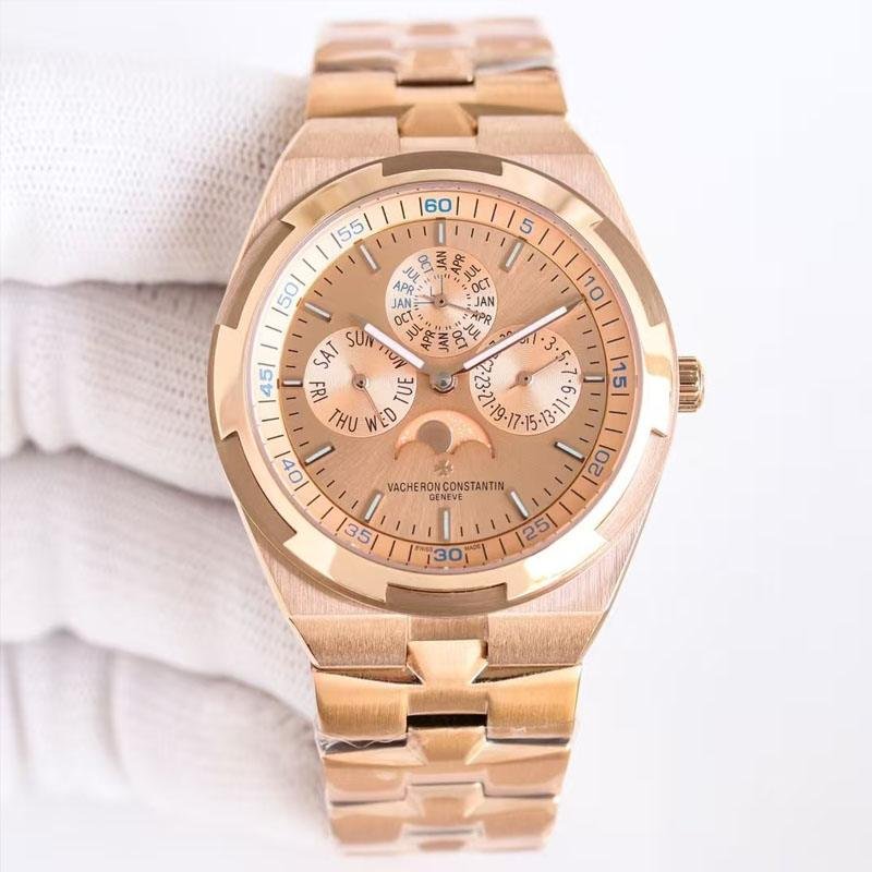 Top clone Vacheron Constantin1:1 reissue Overseas Perpetual calendar ultra thin Pink Gold 4300V/220R-H144, diameter 41.5mm, sapphire crystal,316L stainless steel case equipped with Cal.1120QP movement, exquisitely crafted, every detail perfectly replicated, global fast delivery.