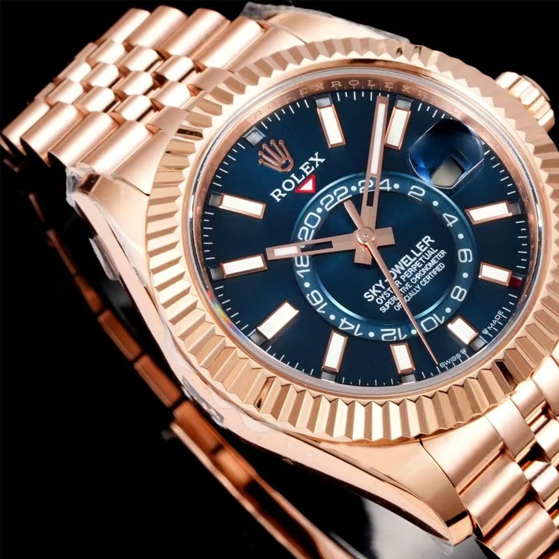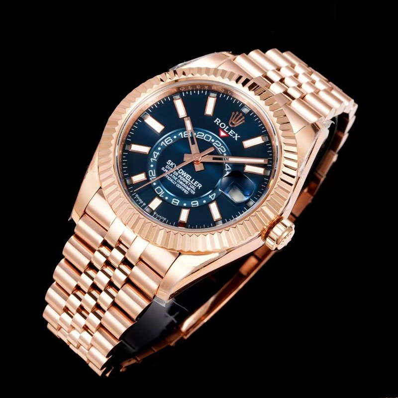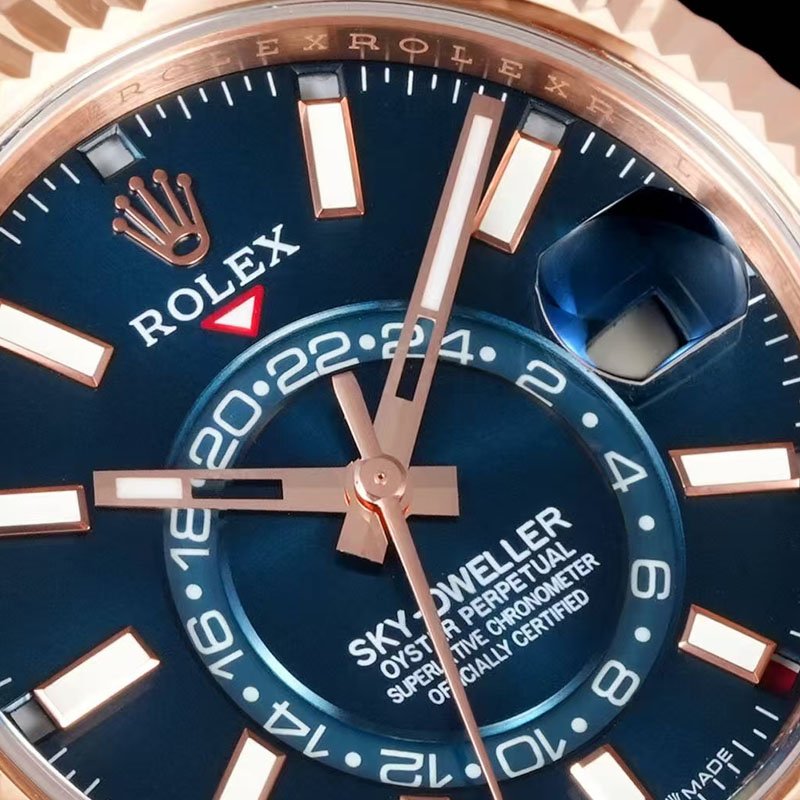 Rolex Sky Dweller Pilot, Verose Gold with blue-green dial and scratch resistant sapphire crystal mirror