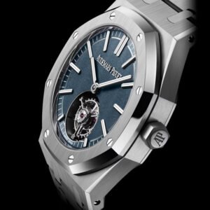 Super clone Audemars Piguet perfectly replicates Royal Oak Selfwinding Flying Tourbillon 26730TI.OO.1320TI.02, built-in flying tourbillon, sandblasted smoky blue dial, diameter :41 Millimeter, three-dimensional hour markers, luminous hands, made of stainless steel, equipped with Calibre2950 movement, exquisitely crafted, every detail perfectly replicated 1:1, global fast delivery.