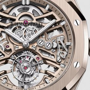 The super clone Audemars Piguet perfectly replicates the Royal Oak Selfwinding Flying Tourbillon 26730TI.OO.1320TI.02 in sand gold color. It features a self-winding flying tourbillon, a 41mm diameter, three-dimensional hour markers, luminescent hands, stainless steel material, and Calibre 2950 movement. It is exquisitely crafted, with every detail perfectly replicated at a 1:1 scale. Global fast shipping is available