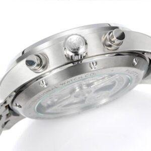 This top-of-the-line 1:1 clone IWC Pilot’s Chronograph (model IW378004) perfectly replicates the classic cockpit instrument panel style with a 43mm diameter. The case is made of stainless steel and is paired with a steel strap of the same material.